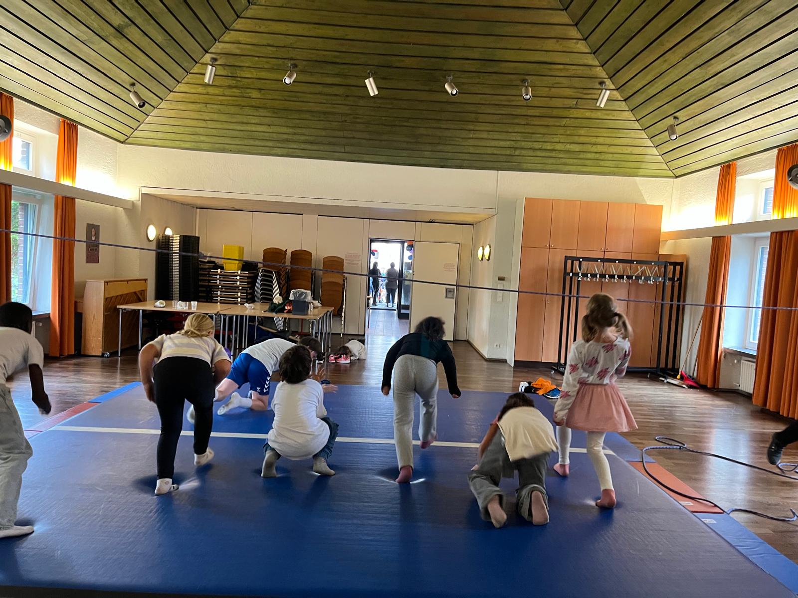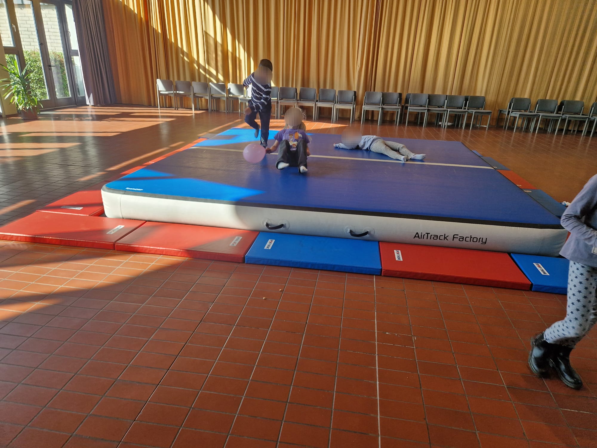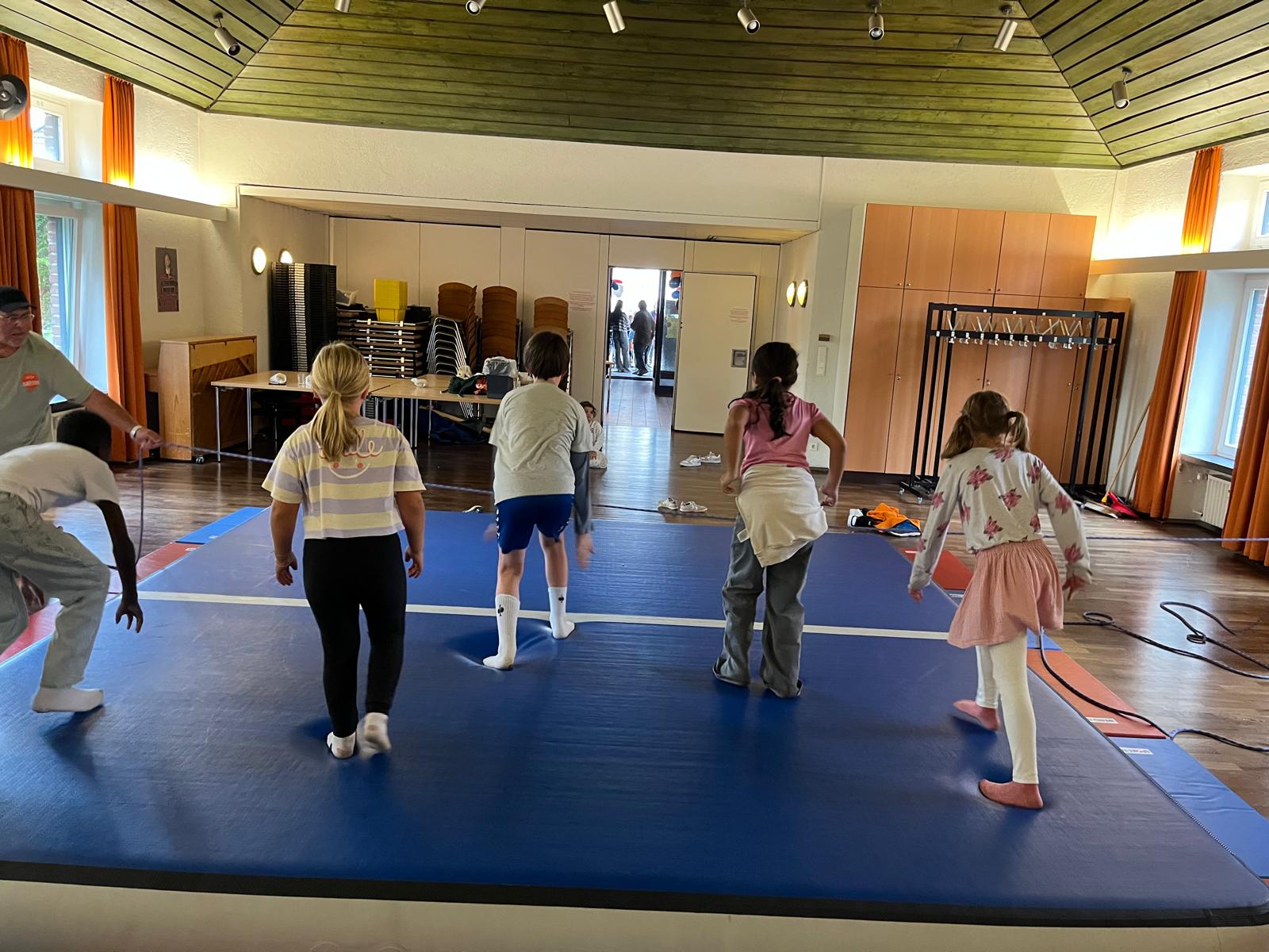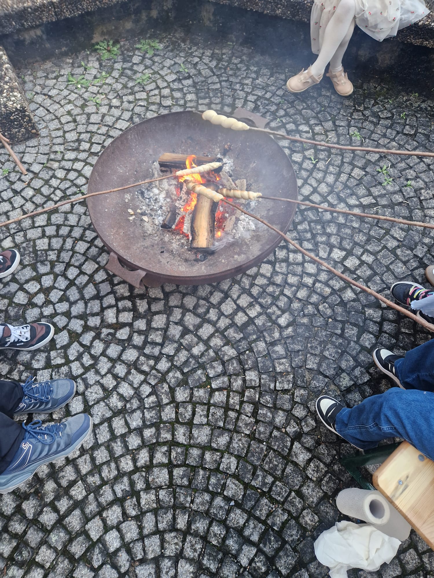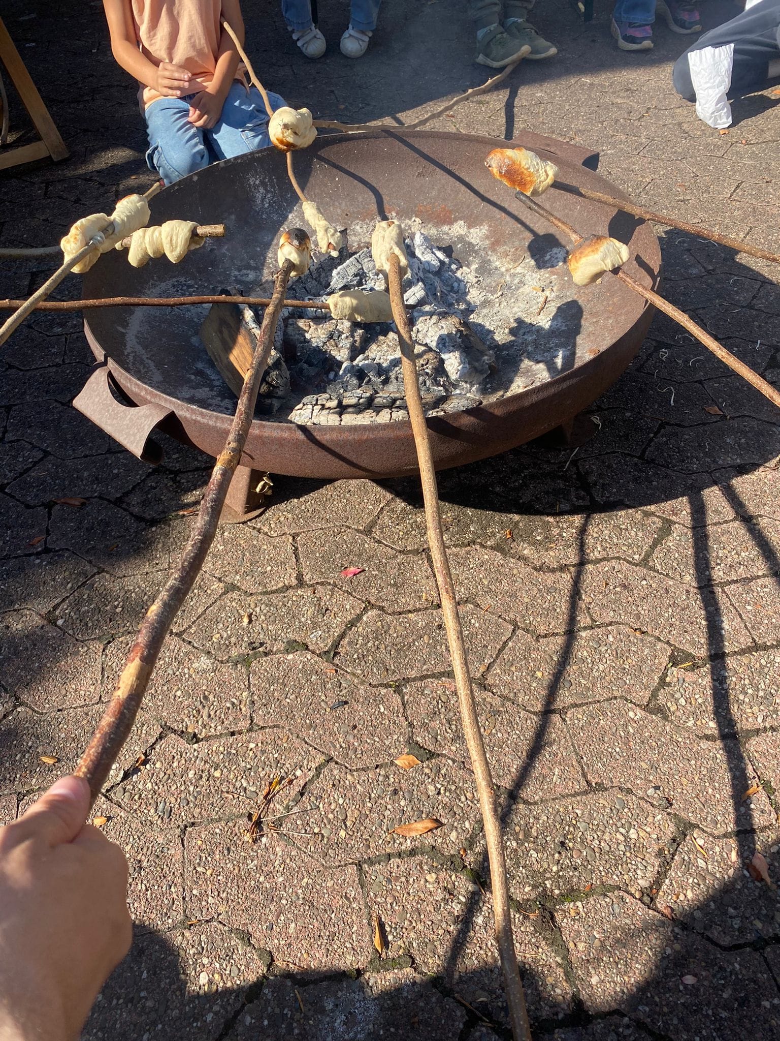 Alle hatten sichtlich Spaß, sei es auf dem Airtrack, einem Luftkissen auf dem verschiedene Spiele gespielt oder einfach wild gesprungen wurde, beim Erstellen vieler kreativer Buttons oder beim geduldigen Backen von Stockbrot.